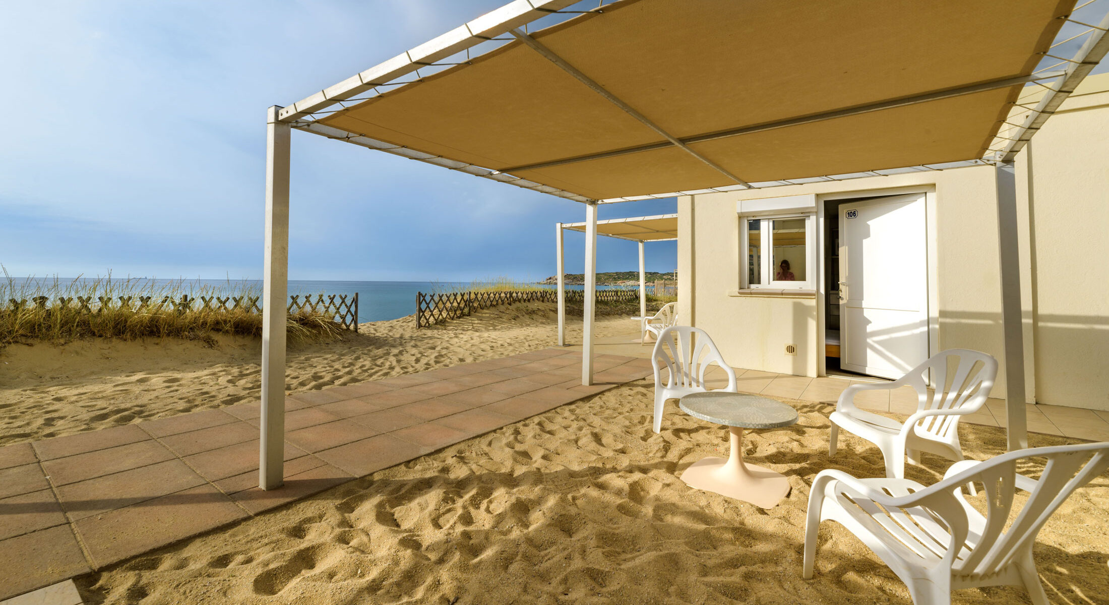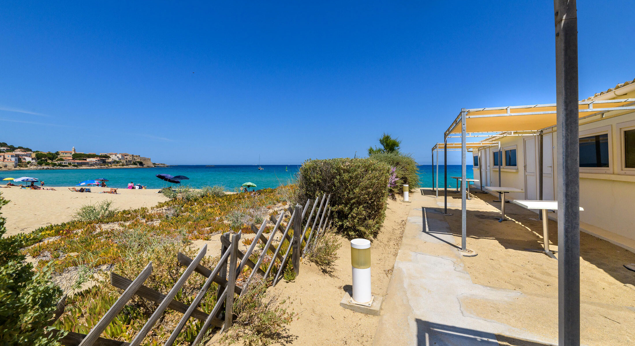 L’Escale Plage is an eco-conscious and unconventional establishment, firmly rooted in its surroundings. It has been designed for you to spend your time outdoors, and enjoy your Corsican holidays a stone’s throw from the sea. The buildings housing the rooms and bungalows are perpendicular to the sea, which creates a shaded area at the entrance to each residence. Our hotel’s ideal location right on the sand allows you to enjoy your favourite activities: